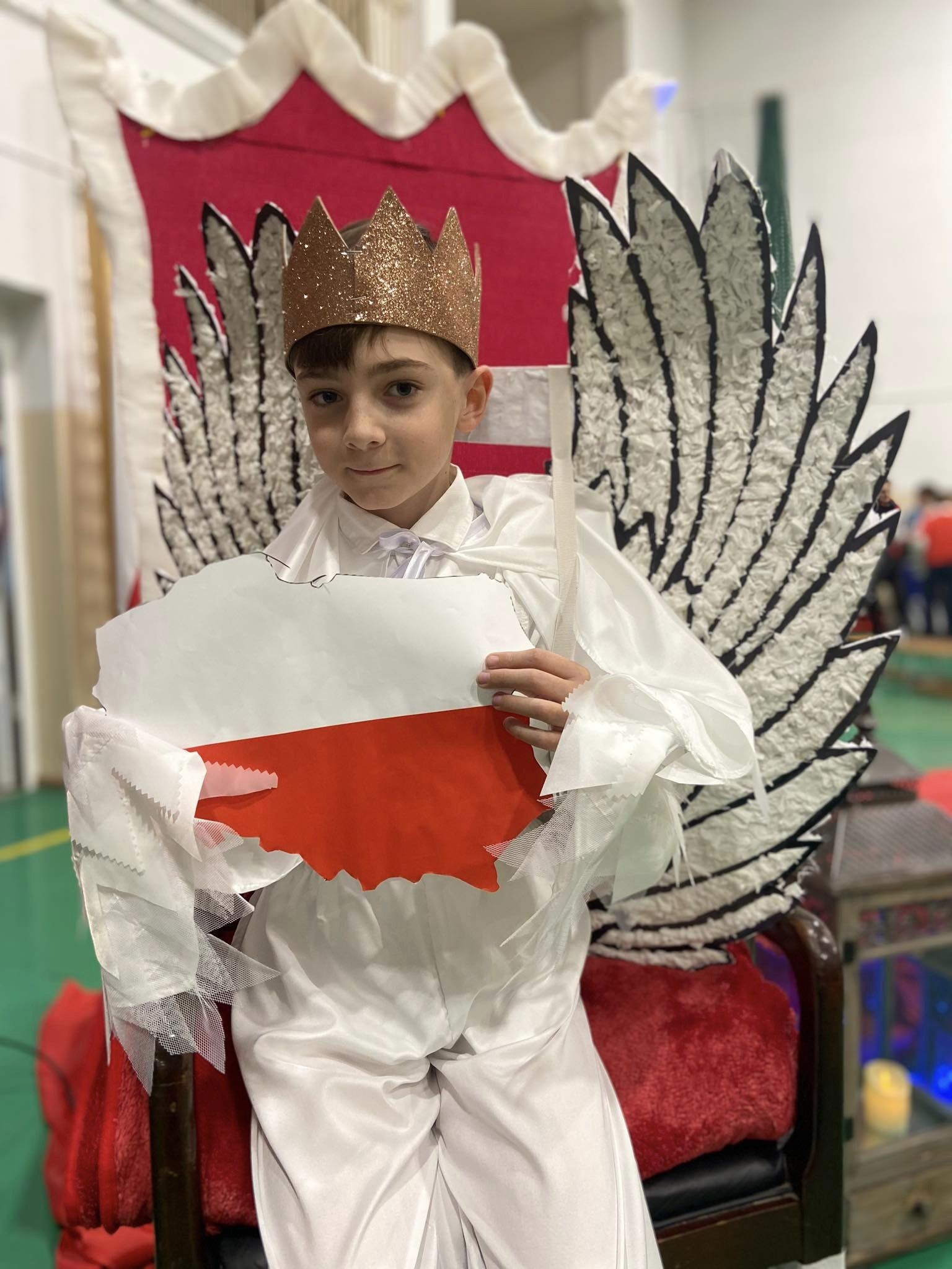 Uroczystość rozpoczęła się wystąpieniem pani dyrektor Anity Rybińskiej. Następnie uczniowie zaprezentowali program artystyczny, w którym mottem przewodnim był Orzeł Biały, będący herbem Polski. Przedstawienie było lekcją historii, w której ukazano niezwykle trudną walkę o niepodległość Polski. Okresy potęgi i wielkości, przeplatane były wojnami, niewolą, upadkiem, poświęceniem naszych przodków. Występ dopracowany w wielu najdrobniejszych szczegółach – od dekoracji i strojów, po grę aktorską młodych ludzi, z pewnością poruszył widownię, a niezwykły nastrój, podkreślony blaskiem świec, udzielił się uczestnikom uroczystości. Świadczyć mogły o tym gromkie brawa i wypowiedzi tuż po programie artystycznym – przy kawie, bowiem na samym przedstawieniu wieczornica patriotyczna się nie zakończyła.