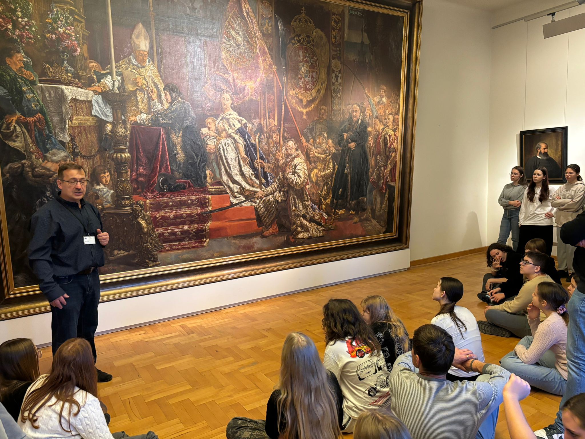 Następnie udaliśmy się do Panoramy Racławickiej, która zrobiła na nas ogromne wrażenie. Monumentalne malowidło przedstawiające bitwę pod Racławicami oglądaliśmy z platformy widokowej, słuchając przewodnika opowiadającego o historii i kulisach powstania dzieła. Realistyczne połączenie obrazu z rekwizytami sprawiło, że wszyscy poczuliśmy się, jakbyśmy przenieśli się w czasie.