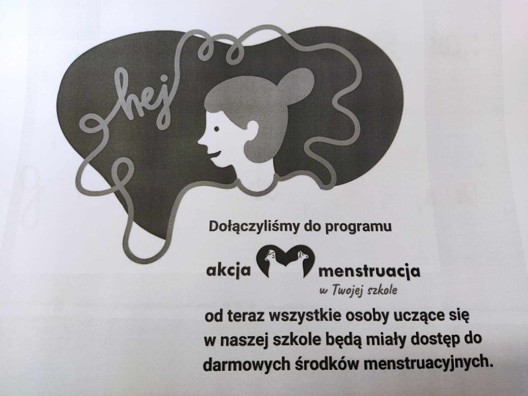 Miło nam poinformować, iż nasza szkoła zakwalifikowała się do ogólnopolskiego programu ,,Akcja menstruacja w Twojej szkole”. Celem programu jest poprawienie komfortu życia osób uczących się, zmniejszenie skali ubóstwa menstruacyjnego wśród osób uczących się oraz przełamanie barier edukacyjnych związanych z menstruacją. Nasza szkoła została zaopatrzona w pudełka wraz ze środkami higienicznymi (podpaski, wkładki higieniczne), które systematycznie będą uzupełniane w damskich toaletach. Koordynatorem szkolnym akcji jest samorząd uczniowski wraz z opiekunami p. Pauliną Radosz i p. Anną Łuszczak.
