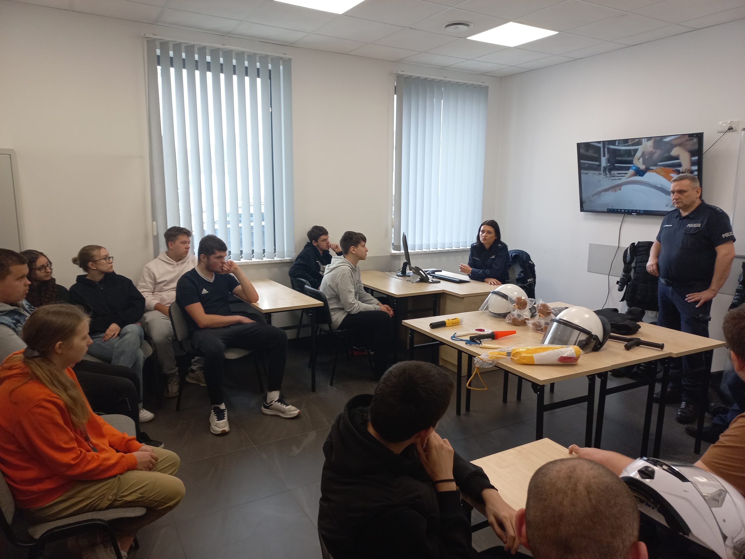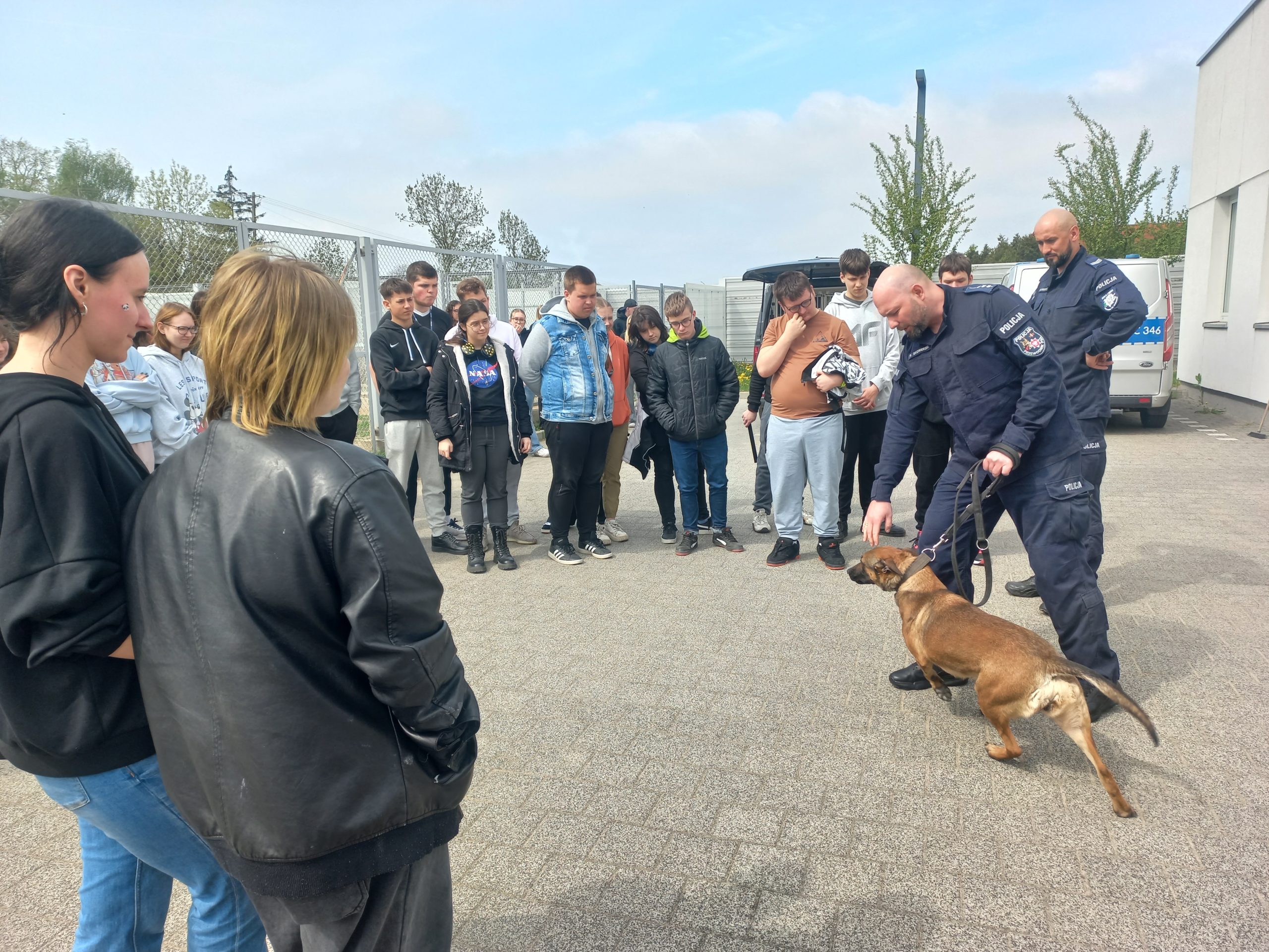 24 kwietnia 2025 r. uczniowie klas ósmych oraz liceum uczestniczyli w Dniach Otwartych zorganizowanych przez Komisariat Policji w Dobrzejewicach. Uczniowie poznali tajniki zawodu funkcjonariusza oraz zapoznali się z jego wyposażeniem -umundurowaniem i sprzętem. Szczególnym zainteresowaniem cieszyły się policyjne radiowozy i motocykle. Chętni mogli zasiąść za ich stery. Uczniowie byli również świadkami pokazu tresury psów służbowych oraz odwiedzili stanowiska technika kryminalistyki.