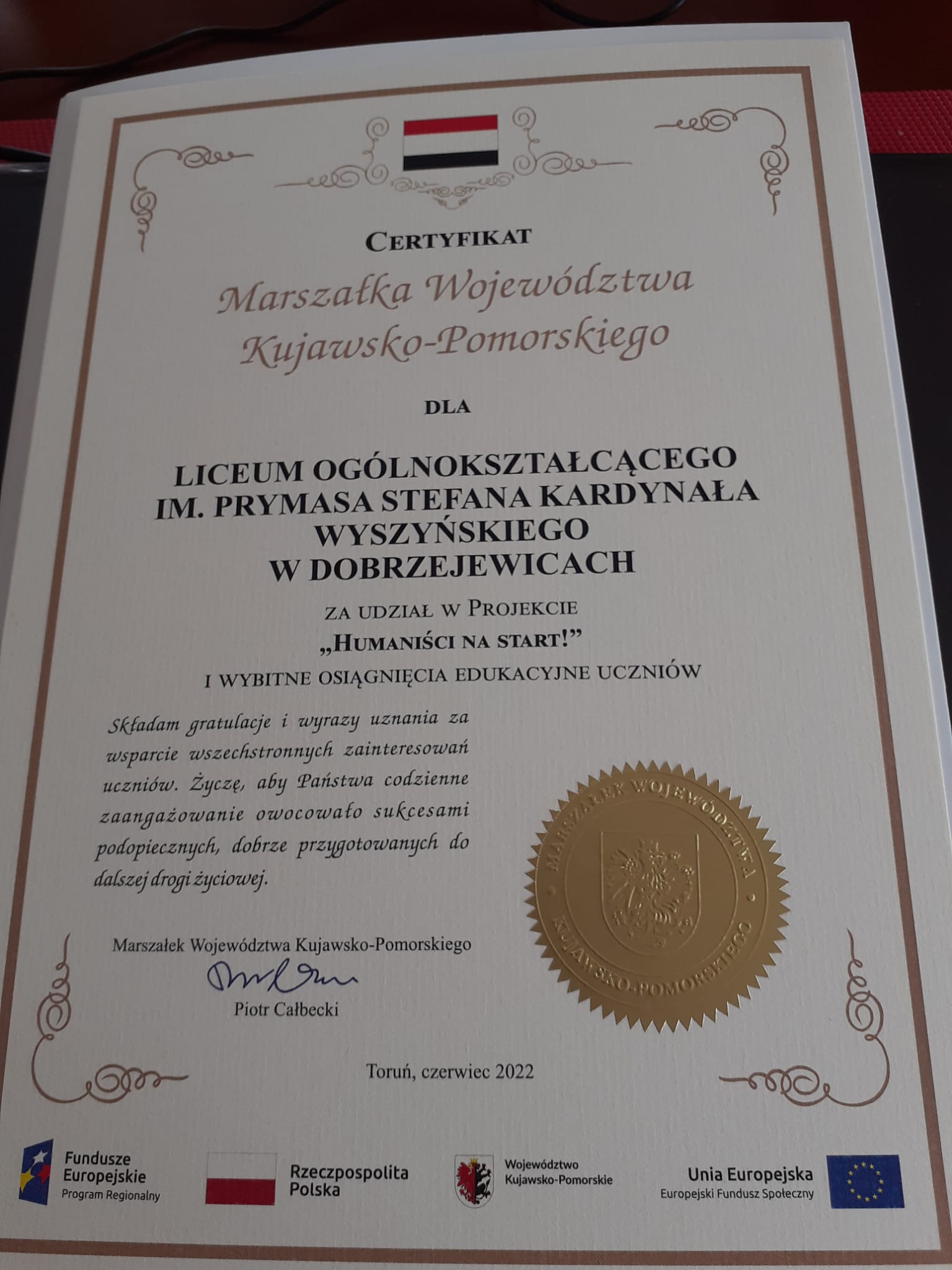 Dnia 6 czerwca 2022 roku podczas uroczystej Gali Laureatów uczeń naszego liceum ogólnokształcącego- Adrian Maciołek– otrzymał list gratulacyjny i statuetkę okolicznościową, którą wręczyli- Marszałek Piotr Całbecki, Przewodnicząca Sejmiku Województwa Elżbieta Piniewska i Członek Zarządu Województwa Sławomir Kopyść.