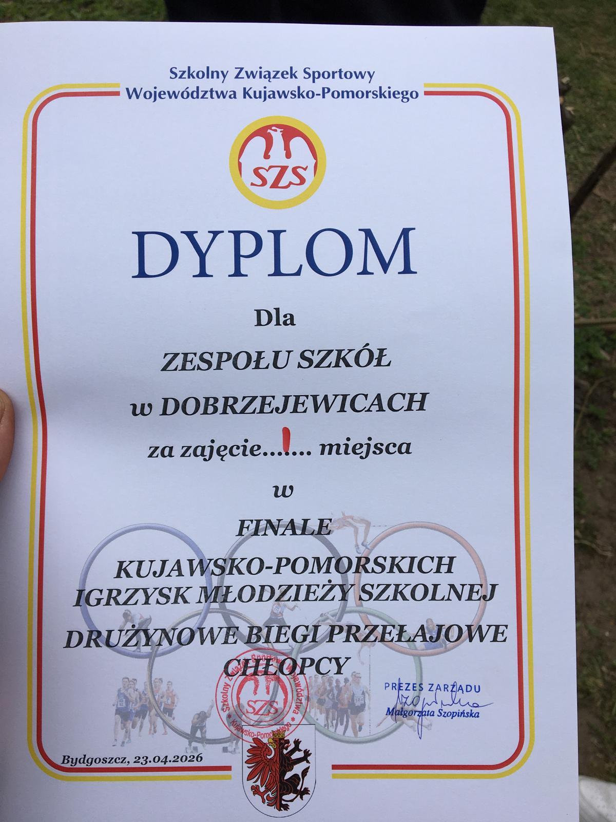 Nasza Szkoła ponownie została Mistrzem Województwa Igrzysk Młodzieży Szkolnej🥇 tym razem w drużynowych biegach przełajowych, które odbyły się 23 kwietnia 2026 r. w Bydgoszczy. 🤩