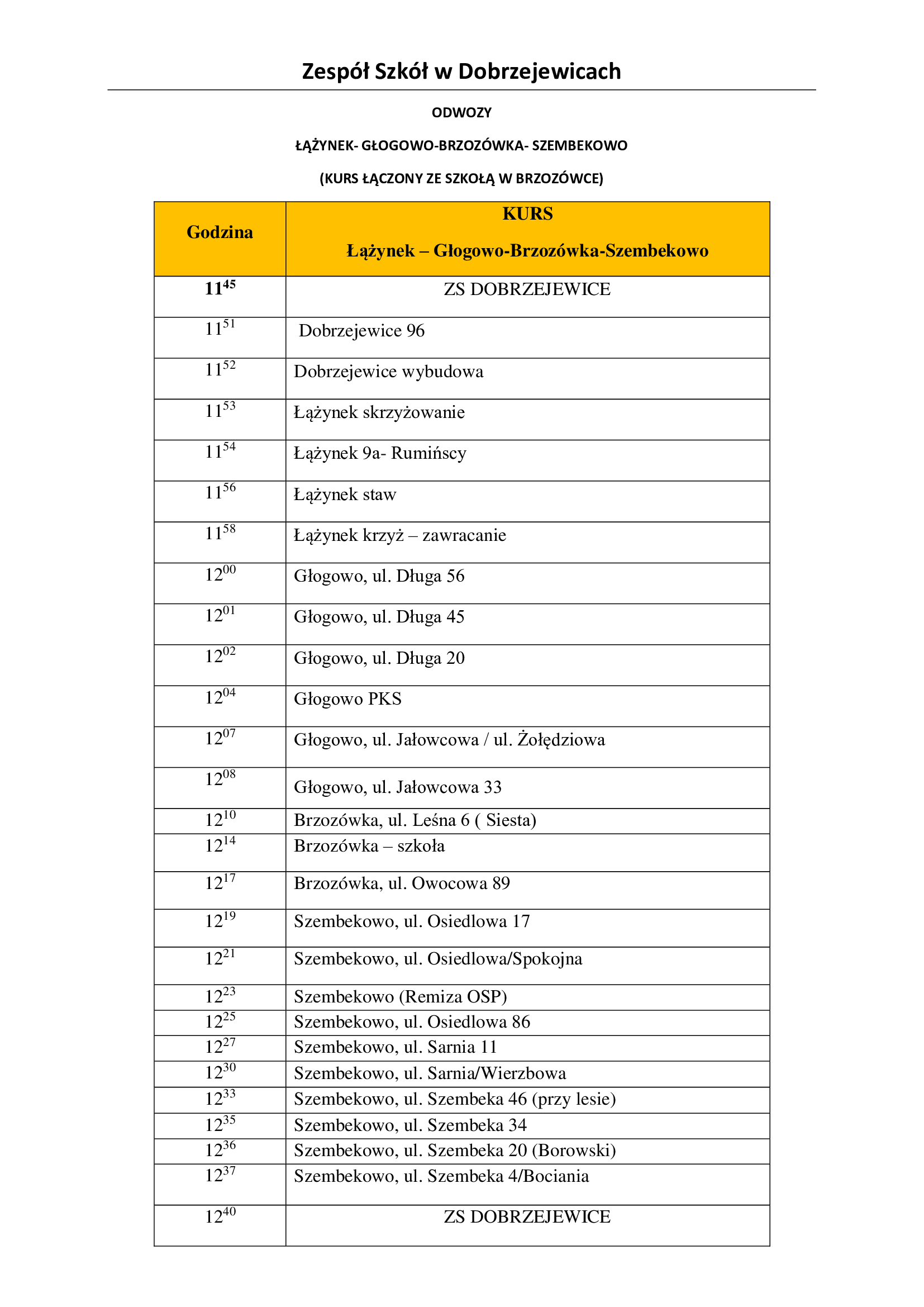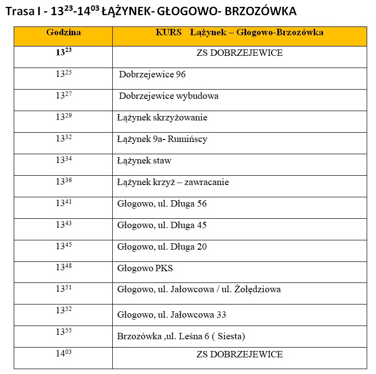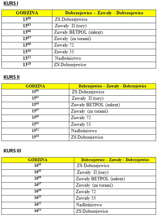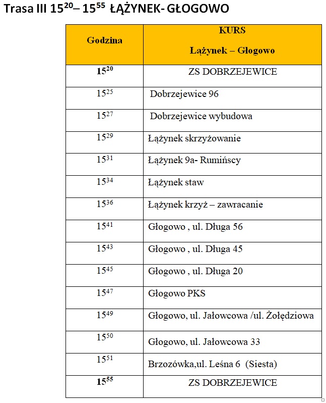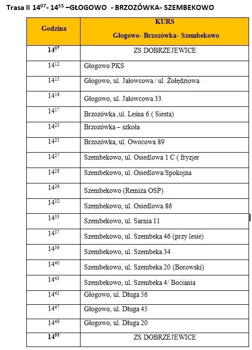 • Rozkład jazdy szkolnego autobusu