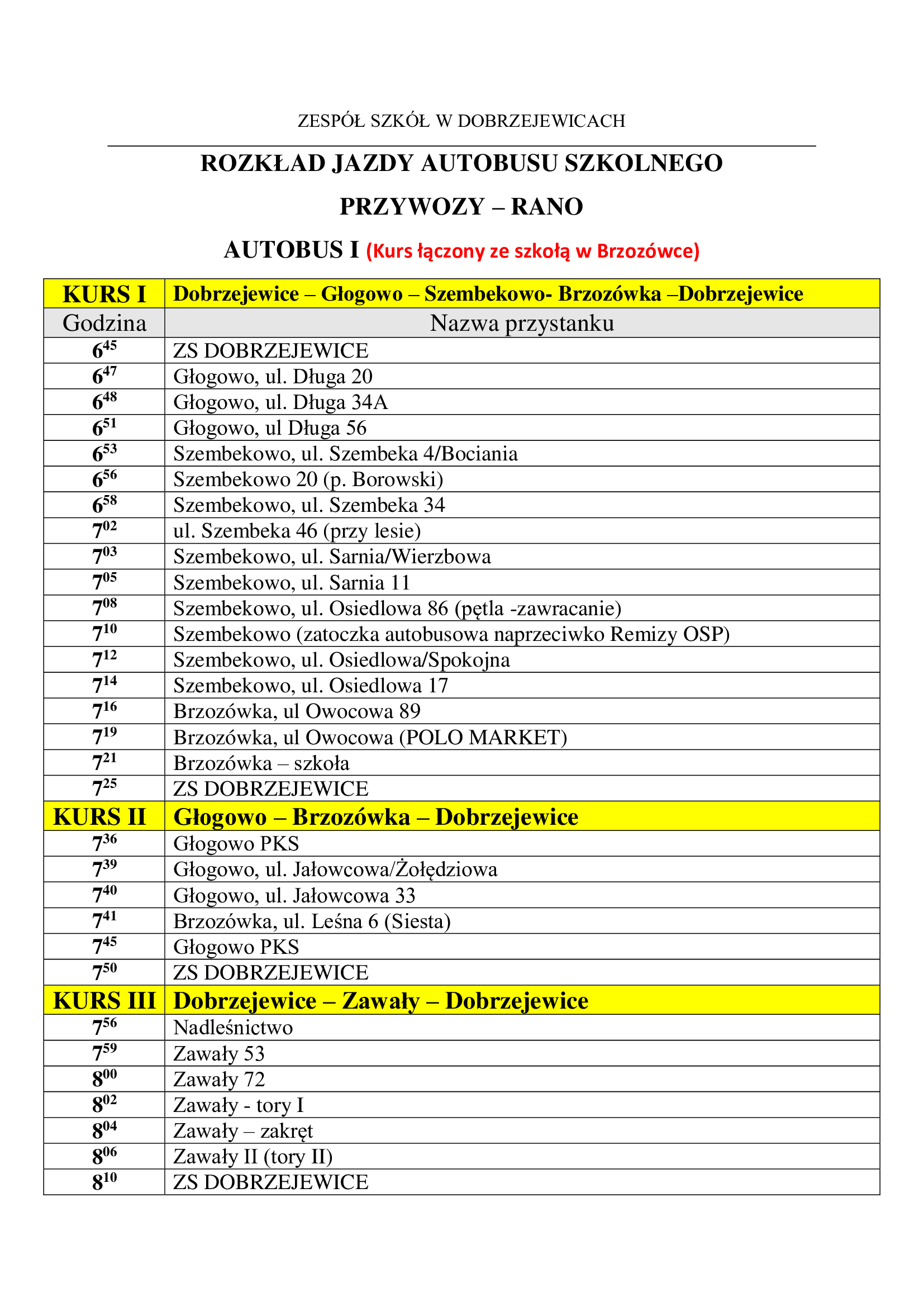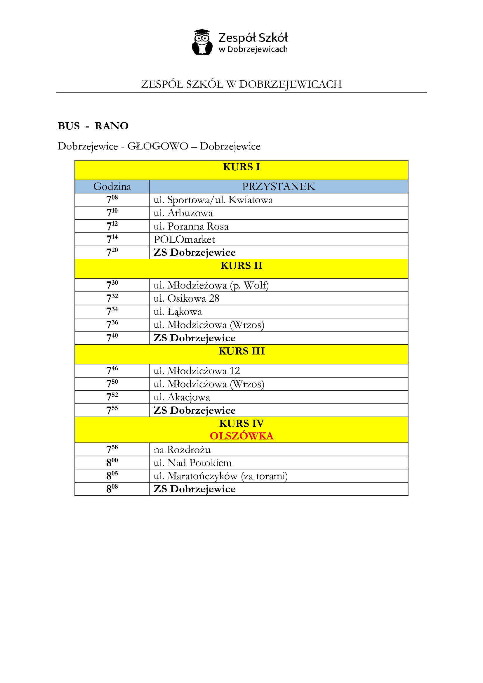 Rozkład jazdy szkolnego autobusu-rok szkolny 2025/26