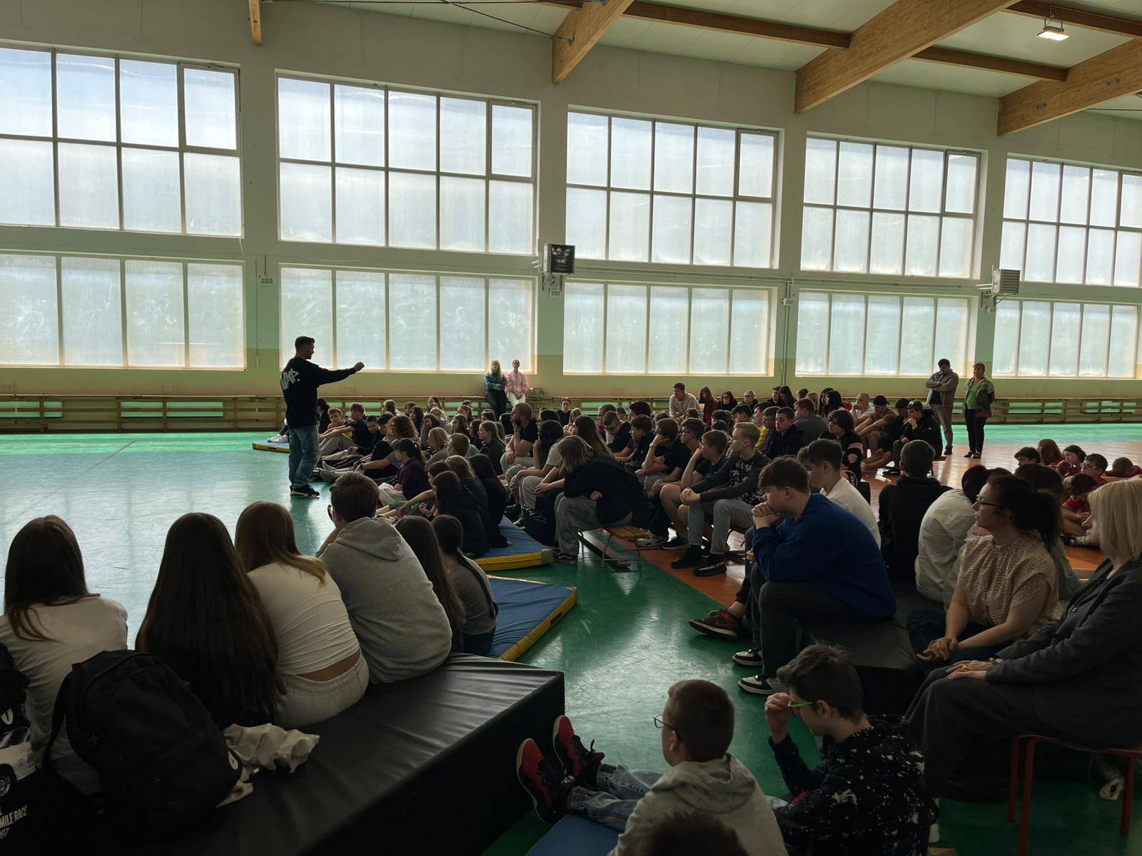 Dnia 27 maja 2025 roku, jak co roku w naszej szkole, odbyło się spotkanie profilaktyczne, w którym udział wzięły klasy 7,8 i młodzież z liceum. Tym razem nasze zaproszenie przyjął Dariusz Stemplewski z fundacji Guade.sign. Opowiadał on o swoich doświadczeniach, jak wyszedł z uzależnienia i duchowej ciemności, nerwicy lękowej, które powodowały, że w pewnym momencie jego życie było w totalnych zgliszczach. Obecnie jego celem jest to, by stać się widocznym znakiem w świecie, dzielić się tym, że jest nadzieja, że nie ma sytuacji bez wyjścia.