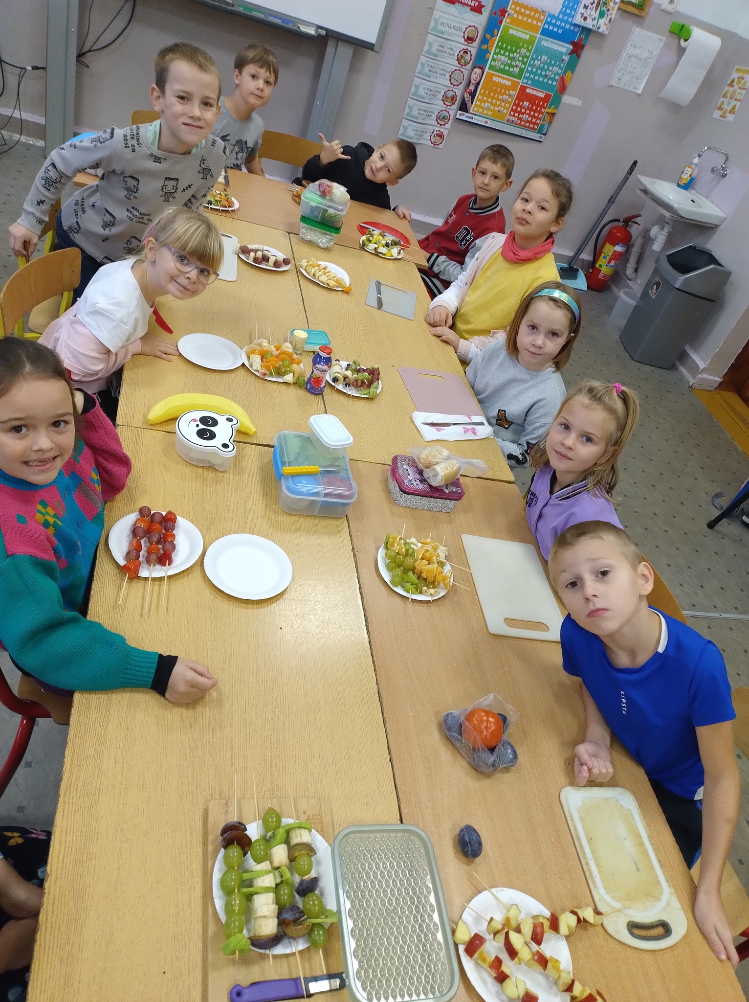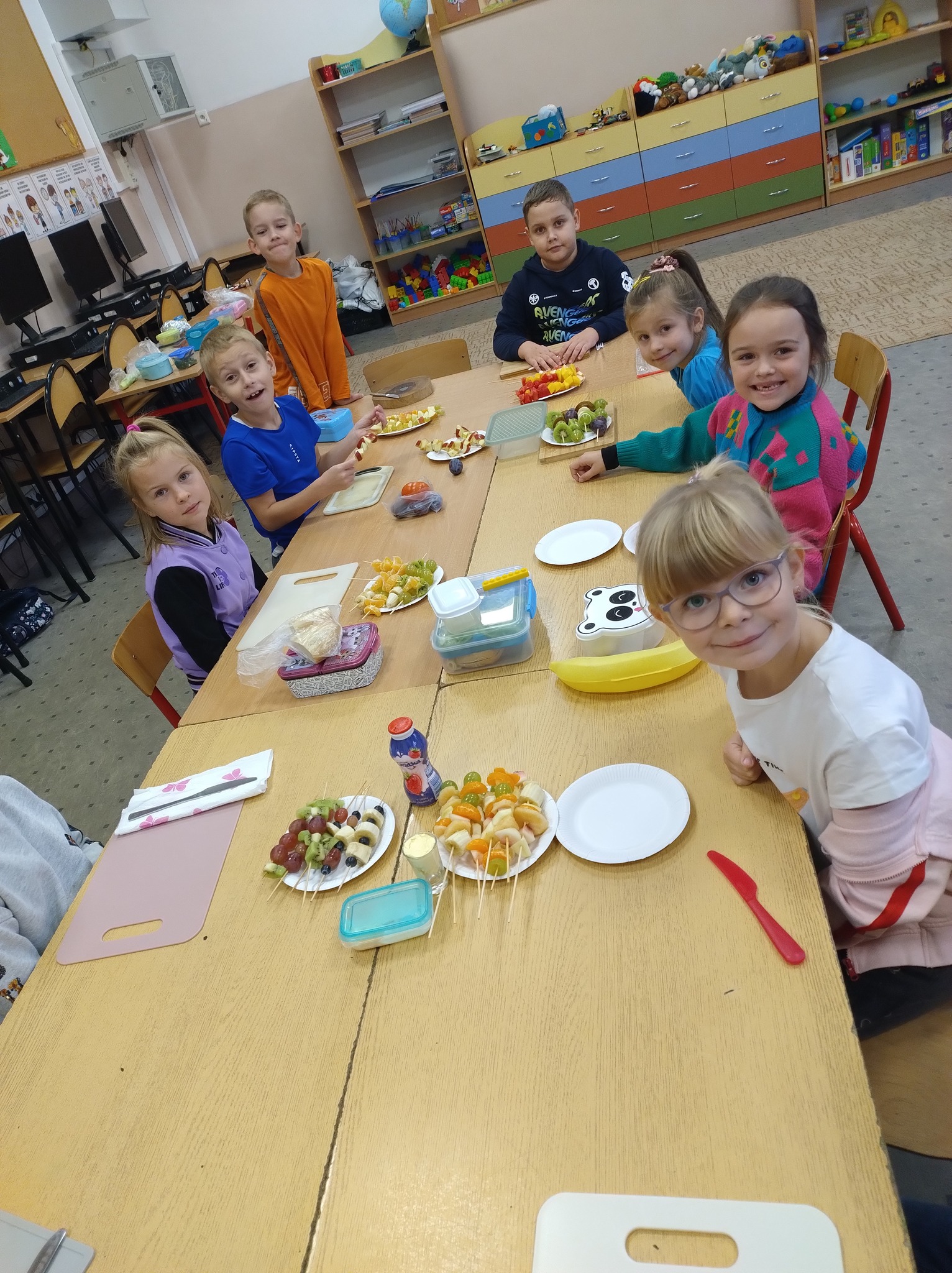 Światowy Dzień Owoców i Warzyw świętujemy 20 października dlatego tego dnia w ramach realizacji „Programu Dla Szkół” uczniowie klasy 1b wykonali śmieszne kanapki oraz owocowe szaszłyki.