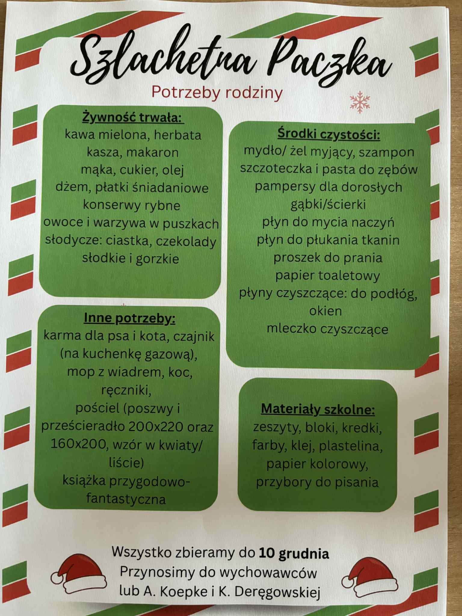 Nasza szkoła po raz kolejny włącza się w ogólnopolską akcję Szlachetna Paczka! W tym roku chcemy wesprzeć dwie rodziny z naszej gminy, które znajdują się w trudnej sytuacji życiowej. Zachęcamy wszystkich uczniów wraz z rodzicami do udziału w zbiórce potrzebnych produktów. Każdy, nawet najmniejszy gest, może stać się dla tych rodzin ogromnym wsparciem i źródłem radości. Wspólnie możemy sprawić, że nadchodzące święta będą dla nich czasem pełnym nadziei i ciepła. Lista potrzeb oraz informacje o sposobie przekazywania darów dostępne są u wychowawców oraz na tablicy przy wejściu do szkoły. Dołączcie do naszej akcji — razem możemy więcej!