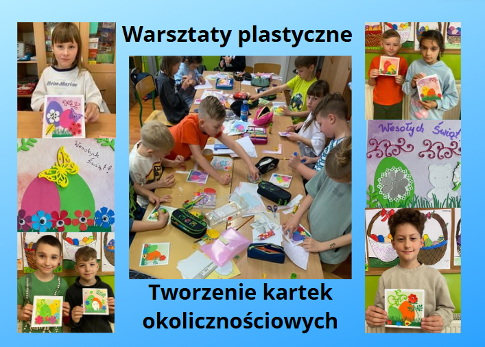 16 kwietnia 2025r. uczniowie kl. II a wykonali od podstaw niepowtarzalne, ręcznie robione kartki wielkanocne. Celem warsztatów było uwrażliwienie na sztukę, rozwijanie wyobraźni, zachęcanie do twórczej aktywności i ekspresji plastycznej. Wzajemna integracja, wspólna plastyczna twórczość połączona z radością tworzenia świątecznej kartki dała dzieciom mnóstwo uśmiechu i zabawy.
