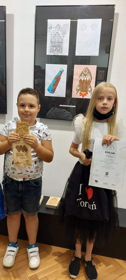 23 czerwca 2021 r. w Domu Muz w Toruniu odbył się wernisaż, na który zostali zaproszeni laureaci Wojewódzkiego Konkursu Plastycznego ,, Projekt Piernik’’. Zadaniem uczestników było zaprojektowanie ciekawej formy piernikowej. Wśród laureatów znaleźli się również uczniowie naszej szkoły.