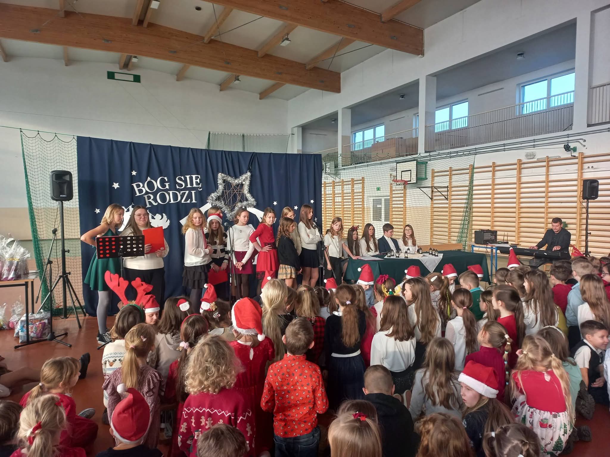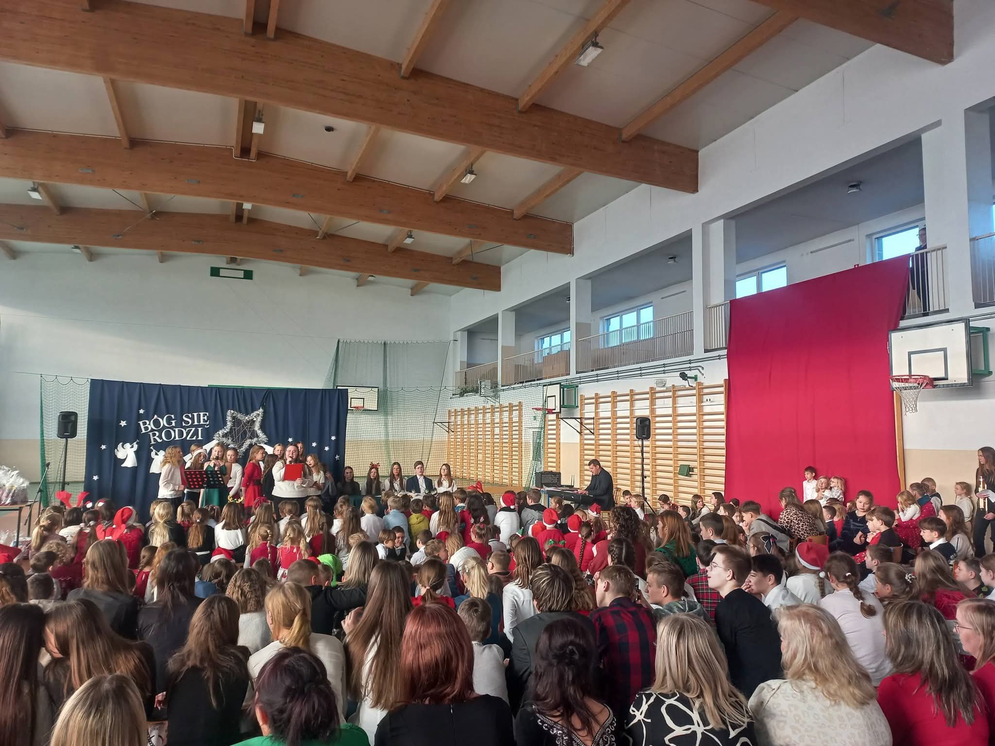 Podczas szkolnego apelu bożonarodzeniowego, który odbył się 19.12.2025, wspólnie zatrzymaliśmy się nad tajemnicą narodzin Jezusa – Światła, które rozprasza ciemności i Miłości, która ma moc przemienić ludzkie serca. Poprzez Słowo Boże, śpiew kolęd i rozważania uczniowie przypomnieli, że Boże Narodzenie to nie tylko tradycja, ale przede wszystkim spotkanie z Bogiem, który przychodzi do człowieka z miłością. Z wielką estymą podziwialiśmy rozmaite talenty, jakie zaprezentowali przed nami artyści. Apel był czasem wyciszenia, radości i budowania wspólnoty, niosąc przesłanie wiary, nadziei, pokoju, miłości i dobra na nadchodzące święta.