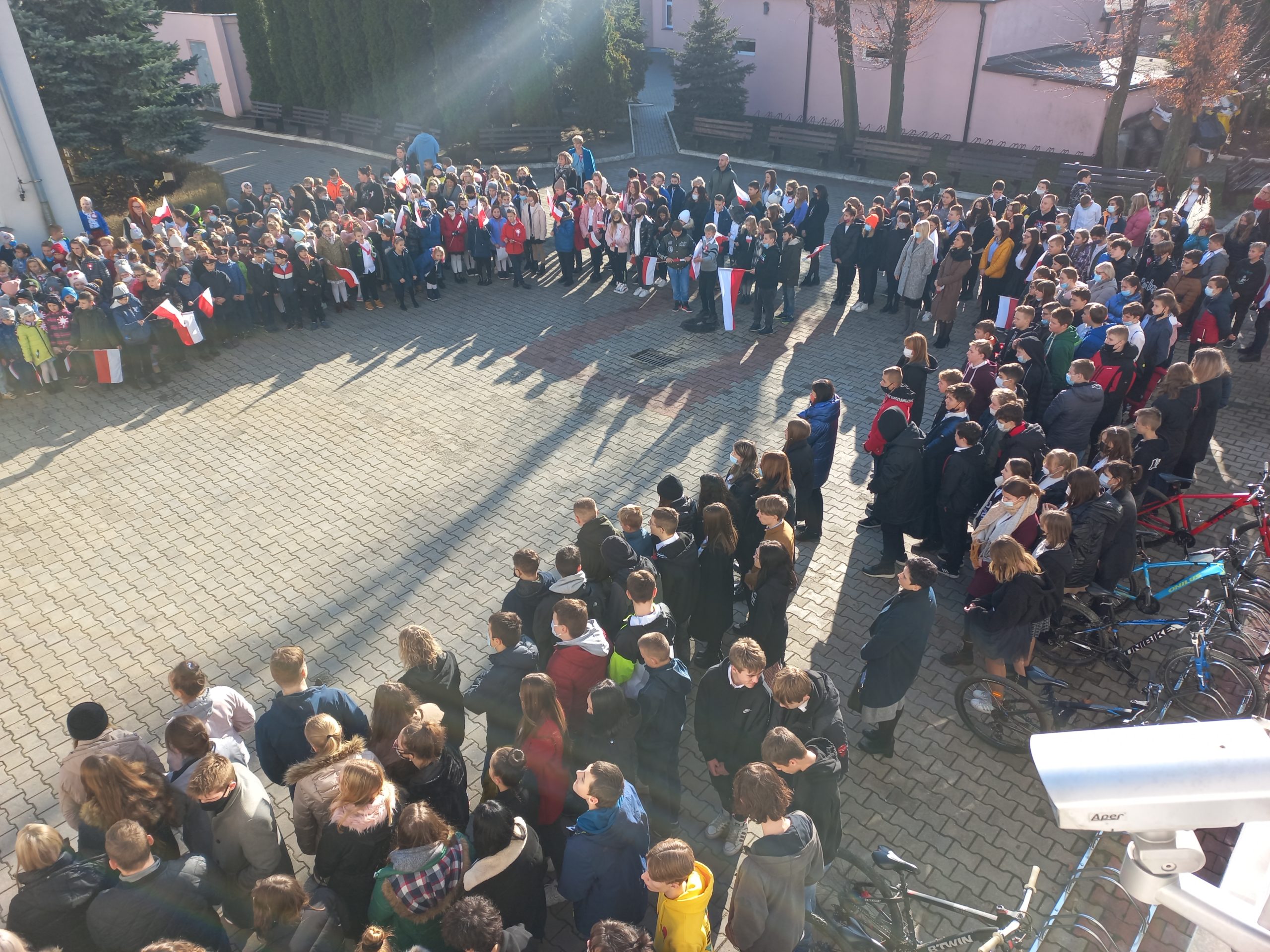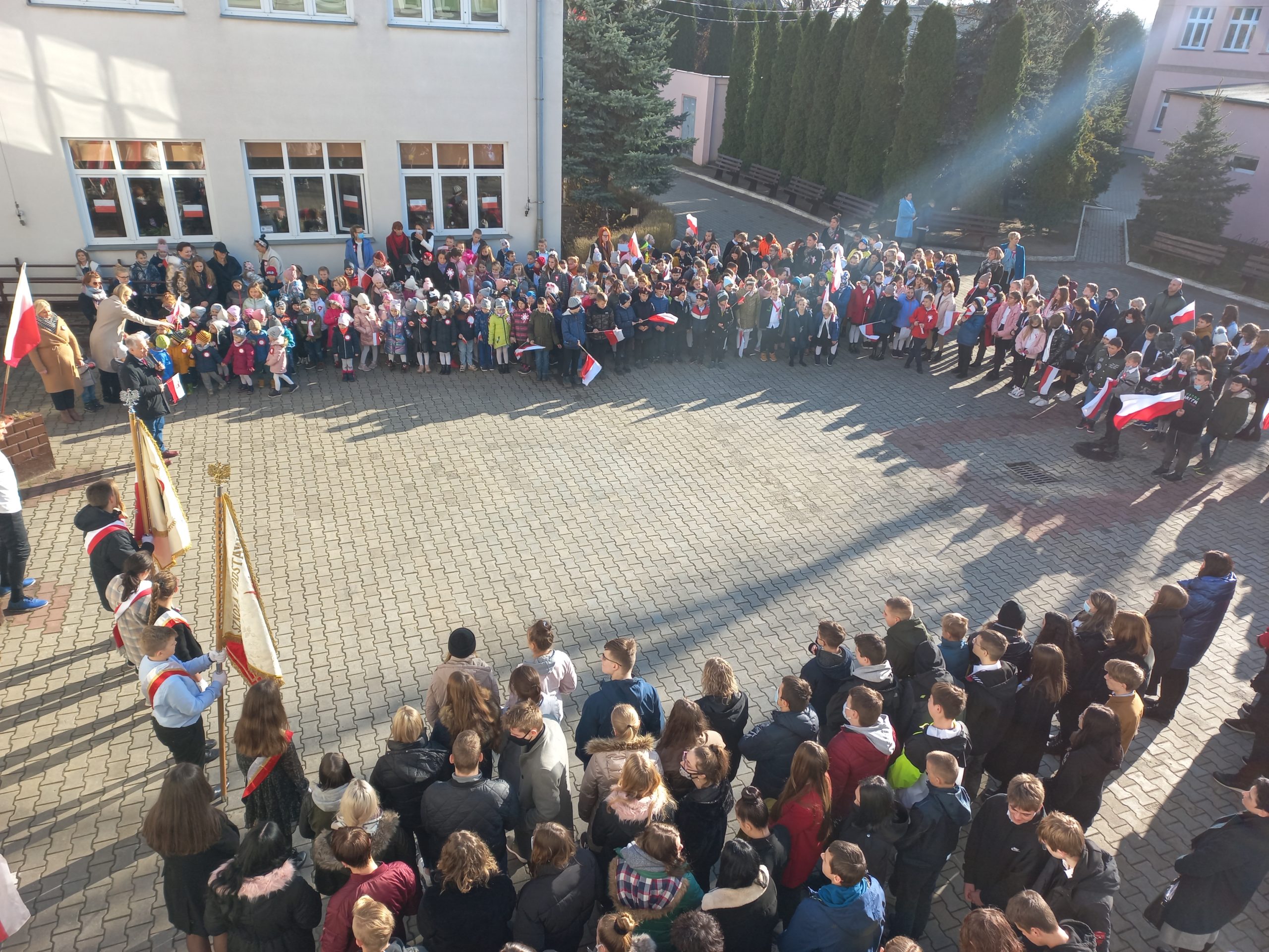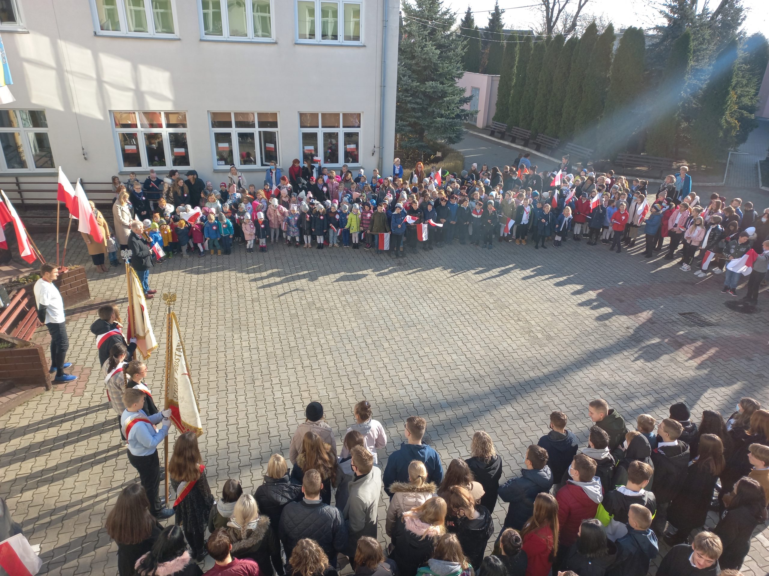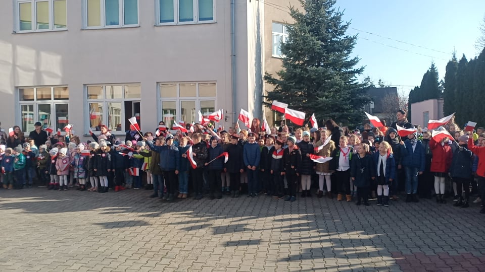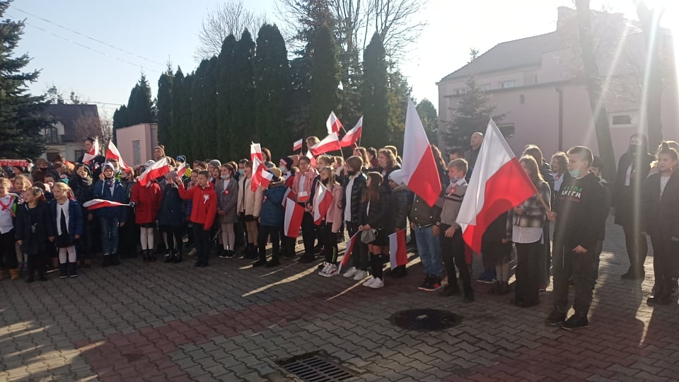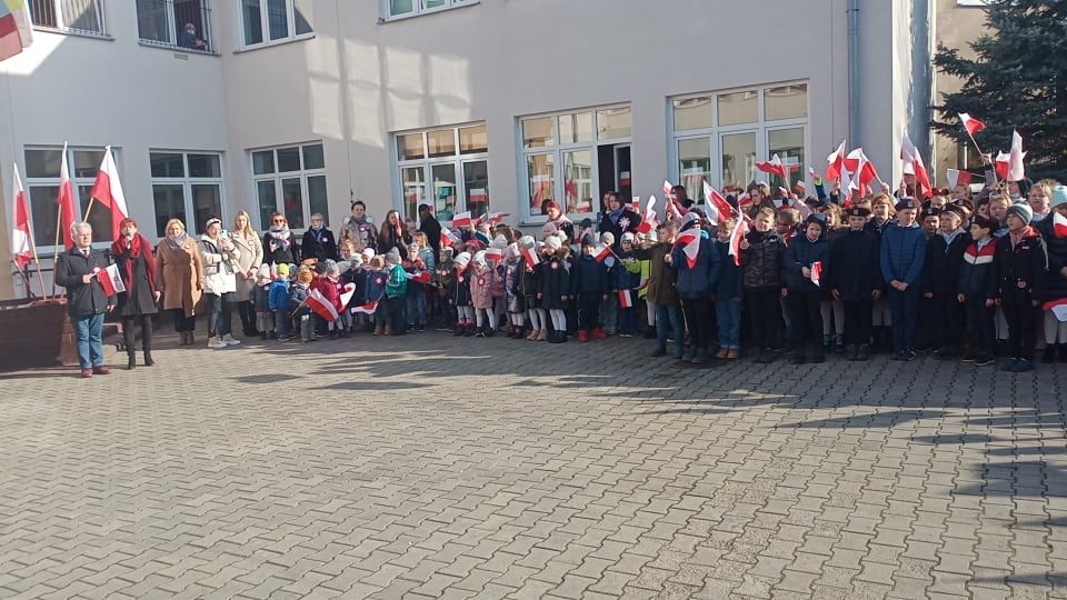 10 listopada 2021 r. o symbolicznej godzinie 11.11 cała nasza szkolna społeczność: ( 572 uczniów ) wraz z dyrekcją i nauczycielami przystąpiła do odśpiewania hymnu państwowego.