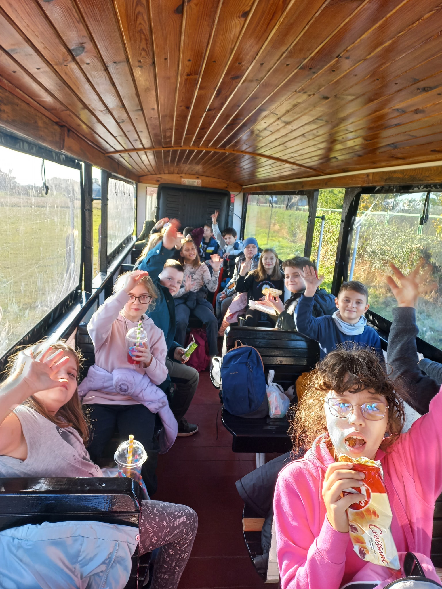 Dnia 23 oraz 26 października uczniowie Zespołu Szkół w Dobrzejewicach uczestniczyli w wycieczce do Żnina i Wenecji. Celem wycieczki było zapoznanie się z historią kolejki wąskotorowej oraz uczestnictwo w warsztatach z nią związanych. Nasi uczniowie mieli okazję pokonać w wyżej wspomnianym pociągu trasę ze Żnina do Wenecji, gdzie dowiedzieli się wielu ciekawych informacji związanych z historią i funkcjonowaniem kolejki wąskotorowej. Po warsztatach na uczniów czekał smakowity obiad. Na koniec każdy uczestnik wycieczki otrzymał paczkę z prezentami. Z Wenecji do Żnina również powróciliśmy kolejką. Całość zwieńczył powrót w autokarach, któremu towarzyszyła muzyka i śpiewy.