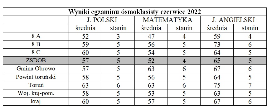 Wyniki egzaminu ósmoklasisty 2022