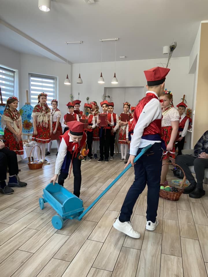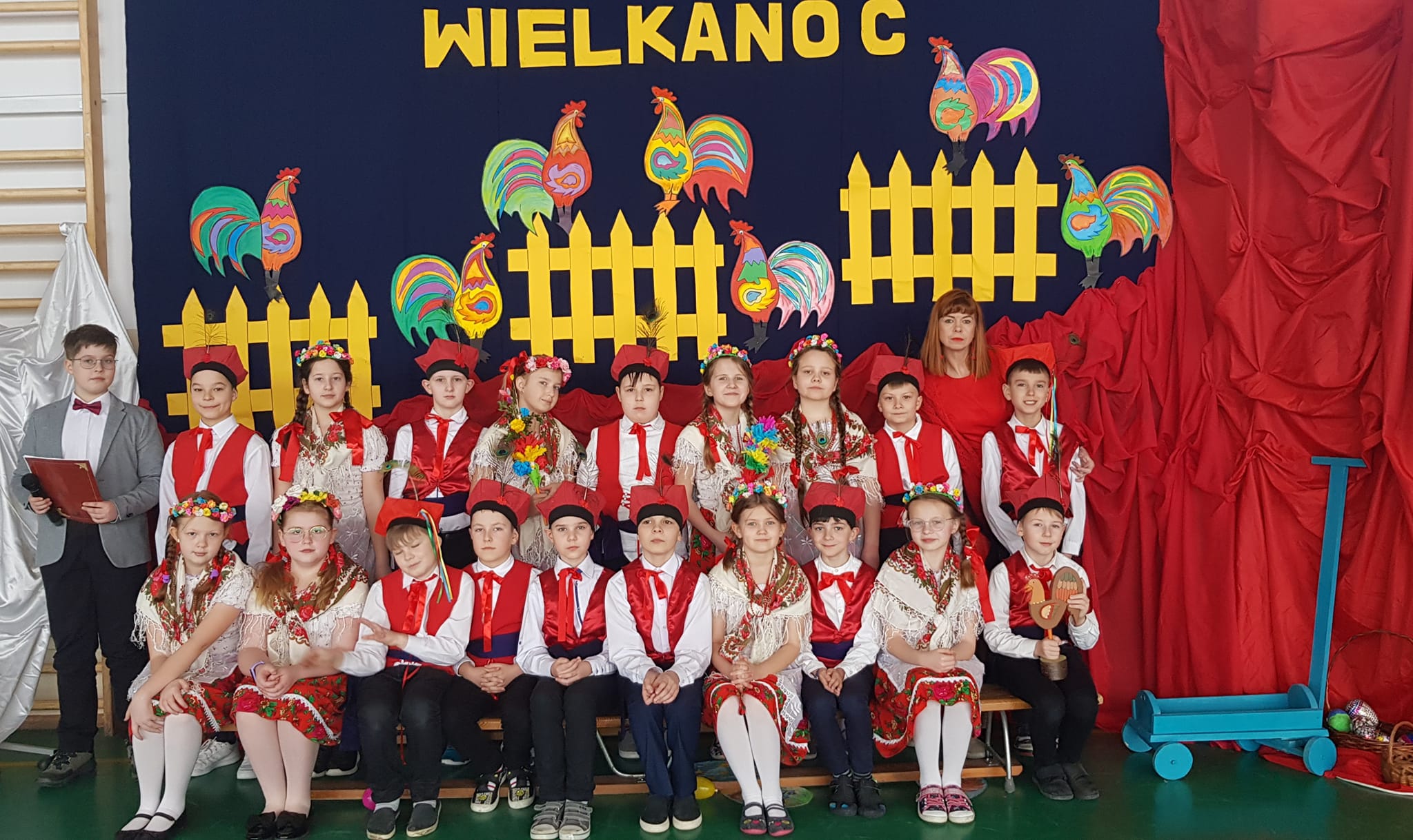 W programie znalazły się m.in. piosenki o tematyce wielkanocnej, wielkanocna lekcja nakrywania do stołu, taniec z gaikiem, chodzenie z kurkiem, przypomniane zostały symbole Wielkanocy. Na zakończenie uczniowie pięknie zatańczyli krakowiaka.